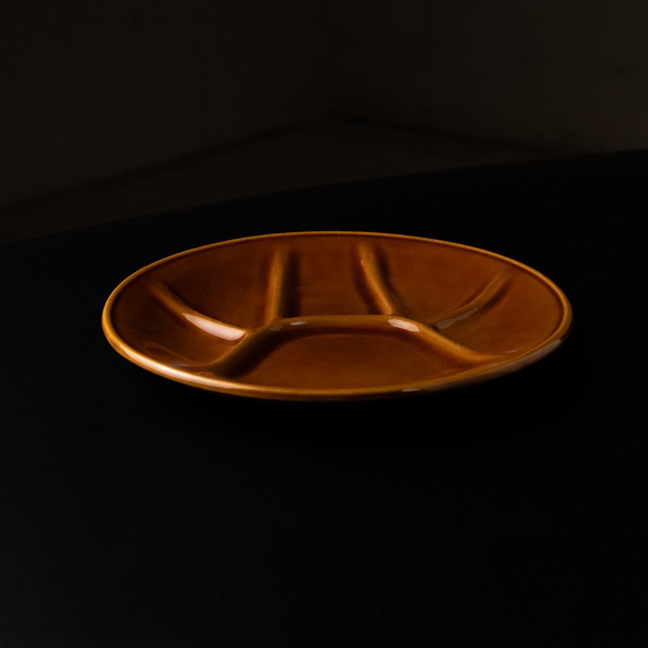艶のあるキャラメルブラウン色の陶器。